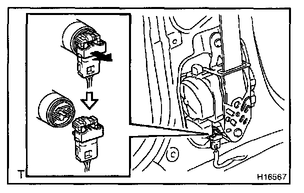 DISPOSALHINT: When scrapping vehicles equipped with a seat belt pretensioner or disposing of a front seat outer belt (with seat belt pretensioner) always first activate the seat belt pretensioner in accordance with the procedure described below. If any abnormality occurs in the seat belt pretensioner operation, contact the SERVICE DEPT. of the TOYOTA MOTOR SALES, U.S.A., INC. When disposing of a front seat outer belt (with seat belt pretensioner) activated in a collision, follow the same procedure given in step 1-(e) in "DISPOSAL".