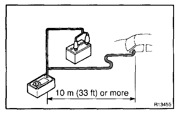 - When activating a front seat outer belt (with seat belt pretensioner), perform the operation at least 10 m (33 ft) away from the front seat outer belt.