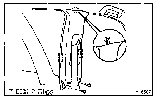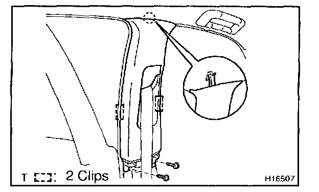 Install the center pillar upper garnish with the 2 screws as shown in the illustration.