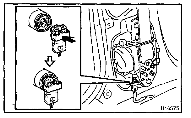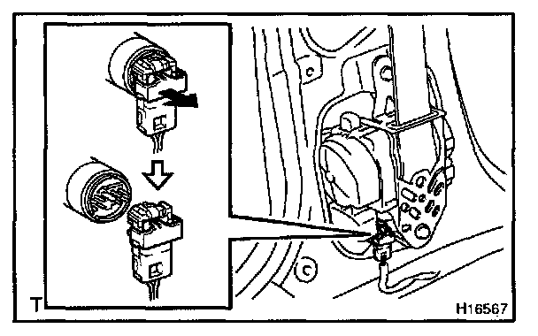 c. Disconnect the pretensioner connector as shown in the illustration.