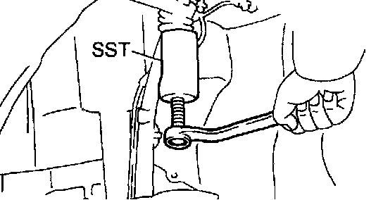 b. Using SST, disconnect the steering knuckle and remove it from the upper ball joint.