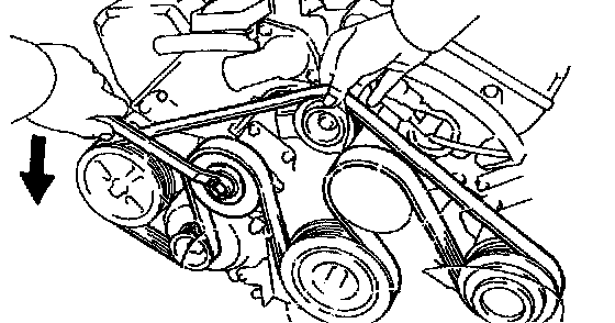 Loosen the drive belt tension by turning the drive belt tensioner counter clockwise, and install the drive belt.