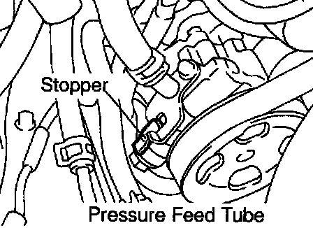 HINT: Make sure the stopper of the pressure feed tube touches the PS vane pump body as shown in the illustration, then torque the union bolt.