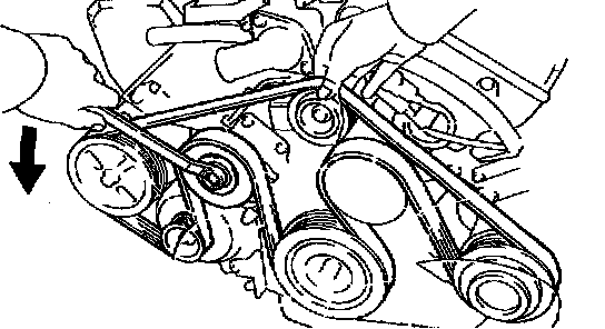 Loosen the drive belt tension by turning the drive belt tensioner counter clockwise, and remove the drive belt.