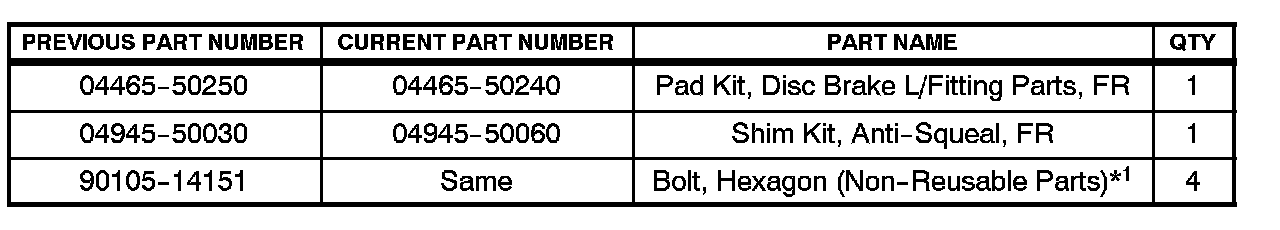 ^ November 20, 2003: The Parts Information table and the image illustrating the brake pads and shims have been updated.