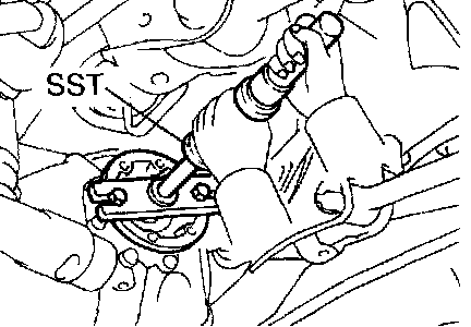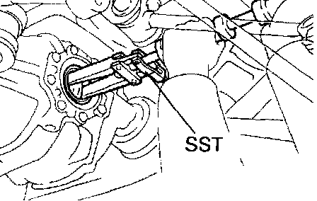 a. Using SST and 2 bolts, remove the side gear shaft.