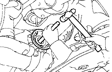 b. Using a brass bar and hammer, install the side gear shaft to the differential.
