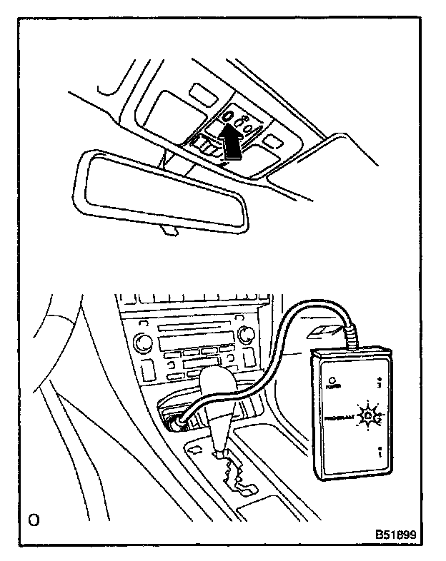HINT: Use the home link tester made by KENT-MOORE for this test. As it is necessary to record the code of the hand-held transmitter, erase the customer's code. When the inspection completes, please register the customer's code again.