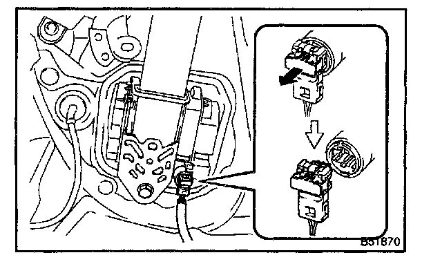 8. Disconnect the pretensioner connector as shown in the illustration.