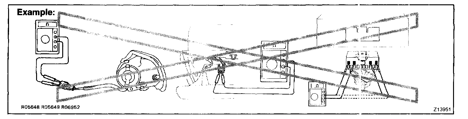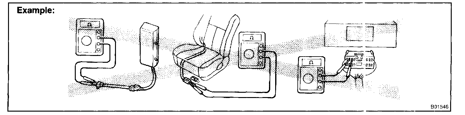2. Never measure the resistance of the airbag squib. (This may cause the airbag to deploy, which is very dangerous).