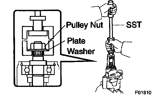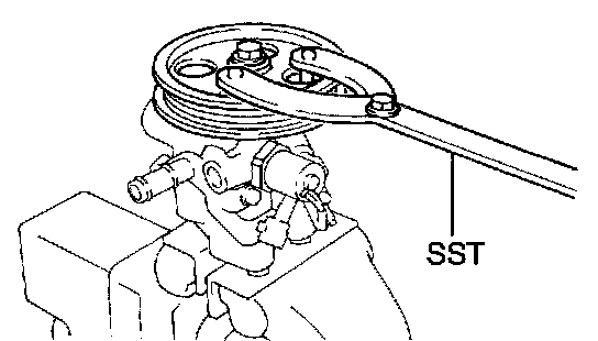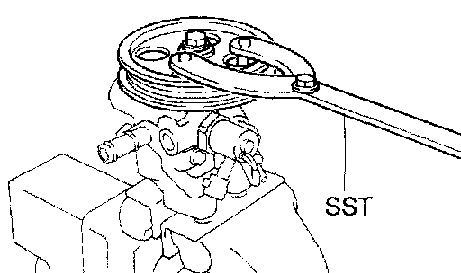 a. Using SST to stop the vane pump pulley rotating, torque the pulley set nut.