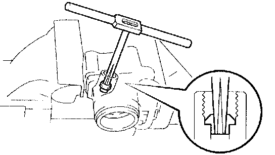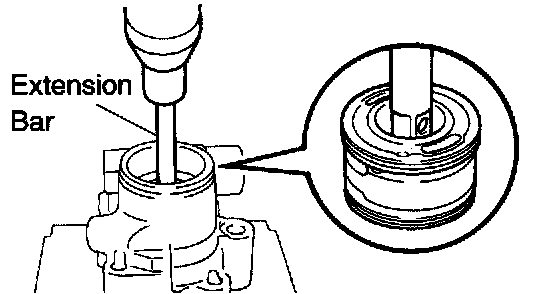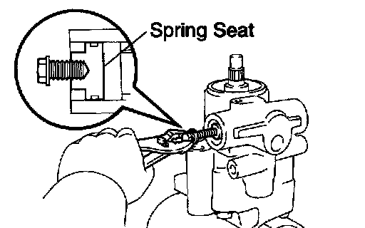 c. Temporarily install a bolt to the flow control spring seat and pull it out together with the flow control spring seat.