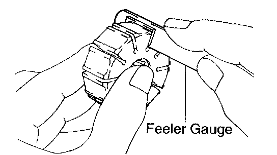 b. Using a feeler gauge, measure the clearance between the vane pump rotor groove and vane pump plate