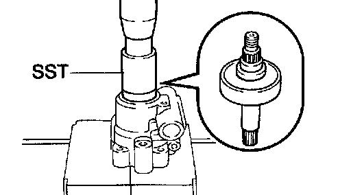 b. Temporarily install a appropriate plate washer and the pulley set nut to the vane pump shaft.