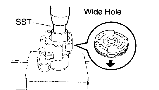HINT: Align the wide hole of the vane pump side plate rear and long cam ring straight pin.