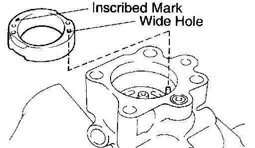 g. Align the wide hole of the vane pump cam ring and long cam ring straight pin, and install the vane pump cam ring with the inscribed mark facing outward.