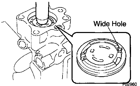 HINT: Align the wide hole of the vane pump side plate front and longer straight pin.