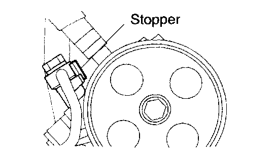 HINT: Make sure the stopper of the pressure feed tube touches the power steering vane pump body as shown in the illustration, then torque the union bolt.