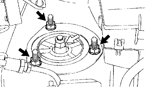 c. Remove the 3 nuts, spring support reinforcement and shock absorber with coil spring.