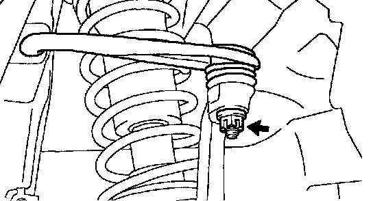 d. Install the bolt and nut, and disconnect the shock absorber to the shock absorber bracket.