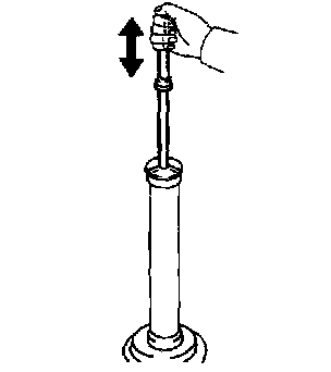 a. Compress and extend the shock absorber rod and check that there is no abnormal resistance or unusual operation sound.