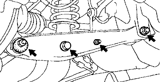 f. Remove the nut, bolt, and suspension arm No. 2 from the rear suspension member.