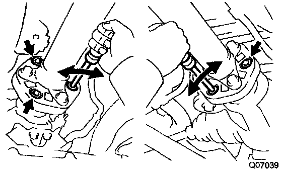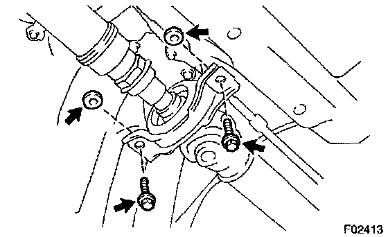 NOTICE: Support the center support bearing by hand so that the transmission and intermediate shaft, and propeller shaft and differential, remain in a straight line.