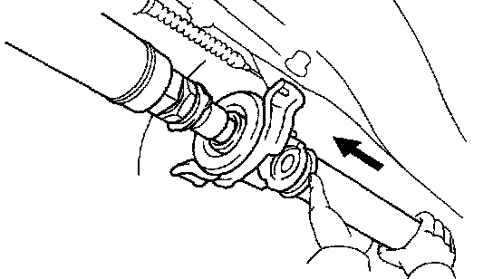 NOTICE: Press the propeller shaft straight ahead to keep the transmission and intermediate shaft aligned straight.