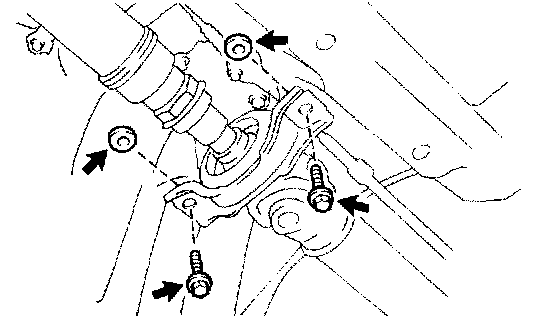 g. Remove the 2 center support bearing set bolts and adjusting washers.