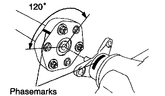 Install the propeller shaft phasemarks and differential/ transmission phasemarks so that their respective alignment phasemarks match.
