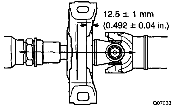 Adjust the center support bearing to keep the intervals as shown with the vehicle in the unladen condition.