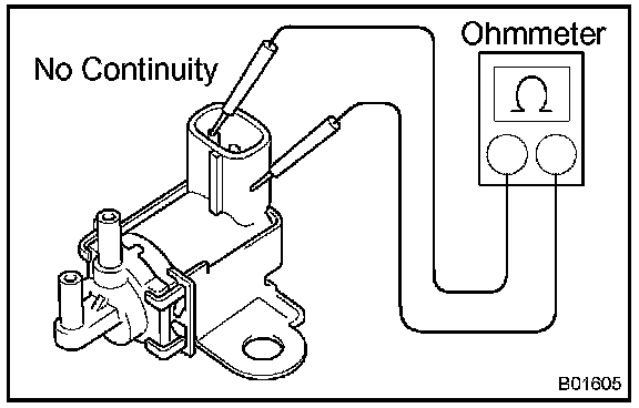 Using an ohmmeter, check that there is no continuity between each terminal and the body.