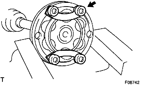 NOTICE: To prevent the balls from falling, remove the inboard joint by holding the inner and outer races.