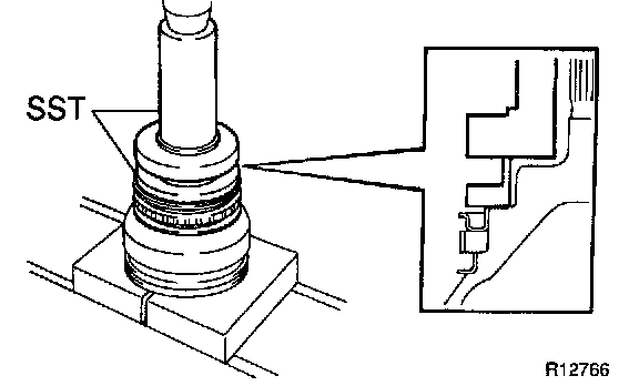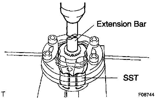 d. Using SST, an extension bar and press, remove the inboard joint from the outboard joint shaft.