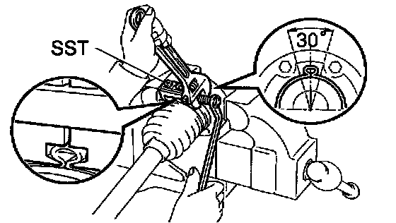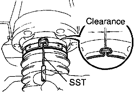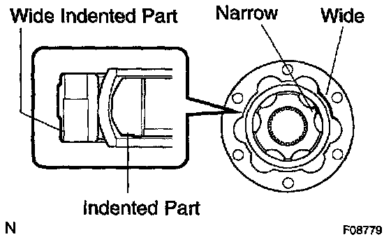 2 Install the outer race so that the wide indented part is at the same side as the indented part of the inner race.