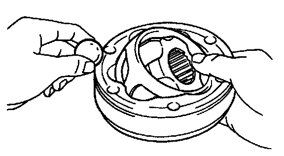NOTICE: When the cage and inner race are tilted over, support the joint with your hand to prevent the balls from falling out.