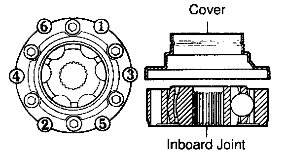 e. Using a plastic hammer, tap the rim of the inboard joint cover into place. Do this in the order shown, and repeat several times.