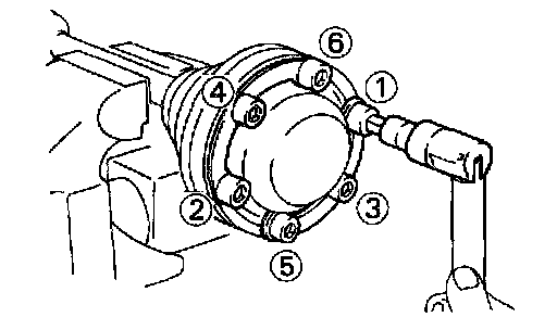 d. Install the 6 hexagon bolts and 3 washers from the end cover side.