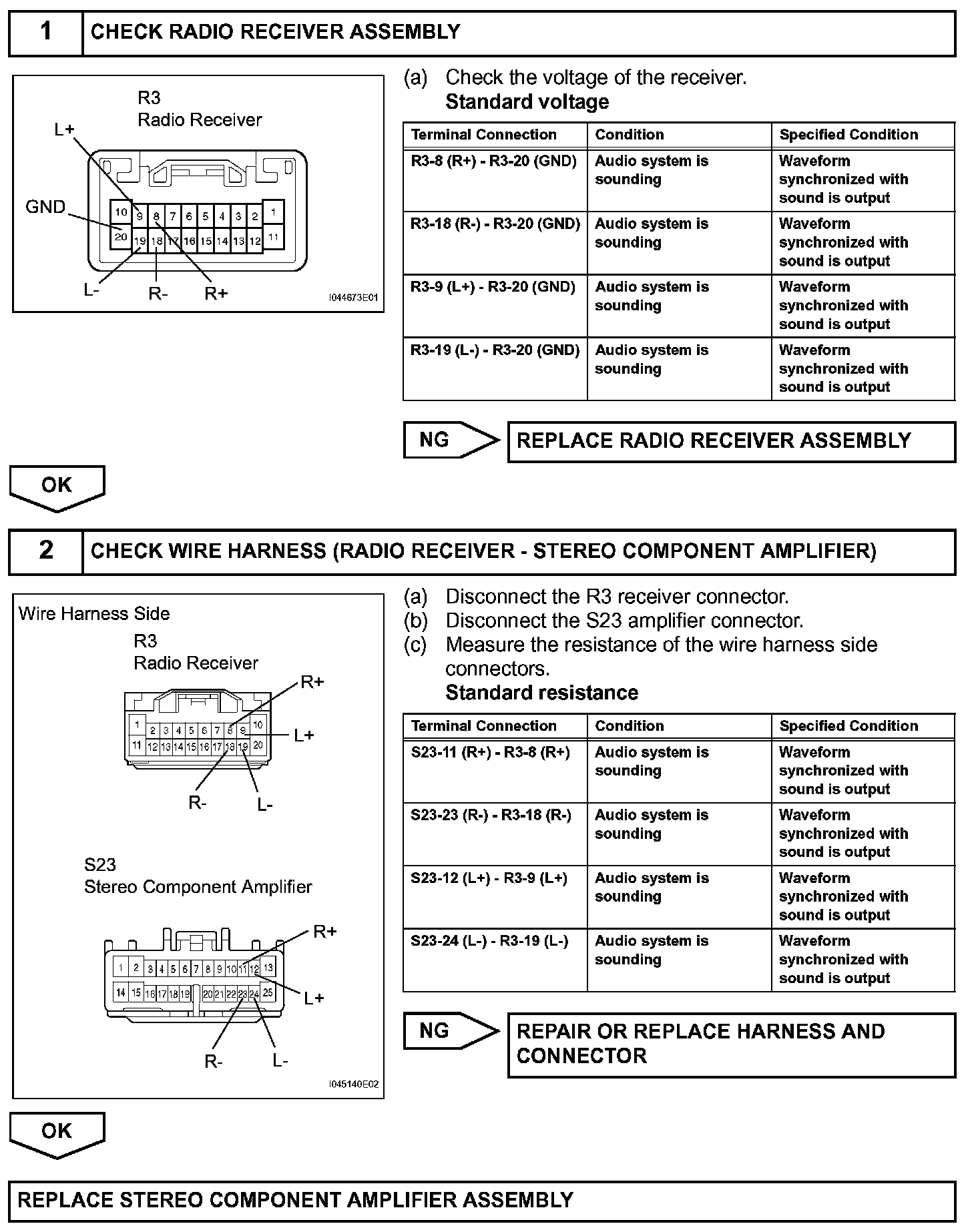 Only Sound of Radio, Cassette Tape or CD cannot be Heard from SpeakerDESCRIPTION
