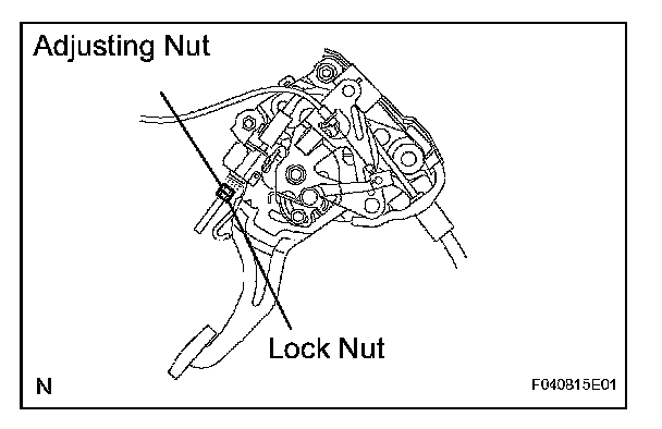 (a) Turn the adjusting nut until the parking brake pedal travel is correct.
