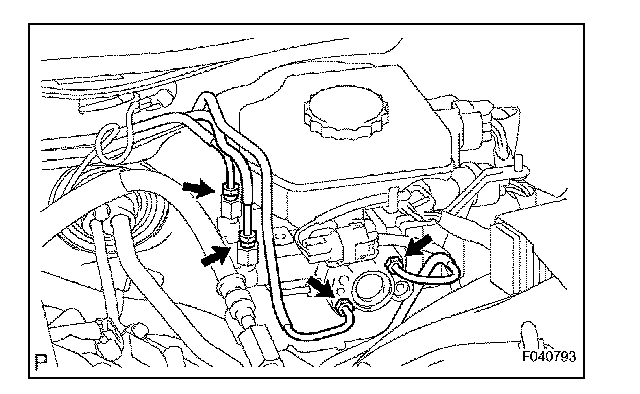 (d) Using SST, connect each brake line to the correct position of the master cylinder, as shown in the illustration.