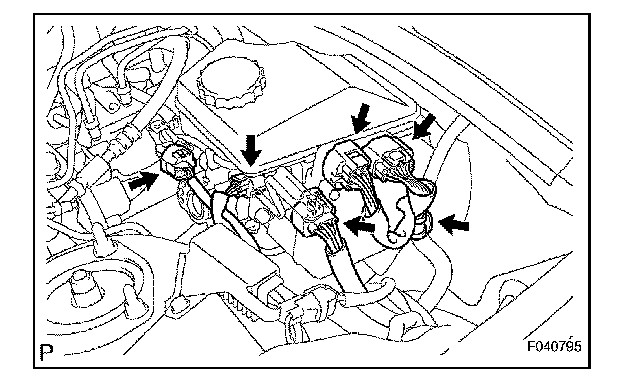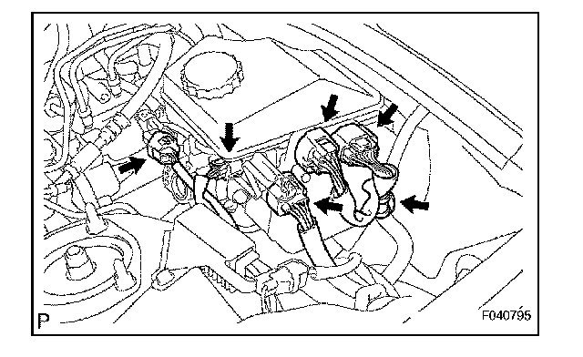 (d) Disconnect the 5 connectors and harness clamp from the master cylinder.