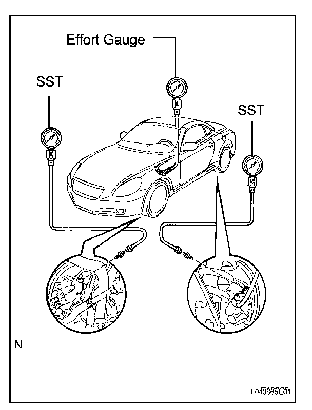 (c) Install an LSPV gauge (SST) and brake pedal effort gauge, and then bleed air.