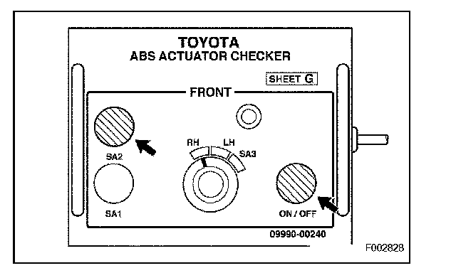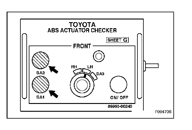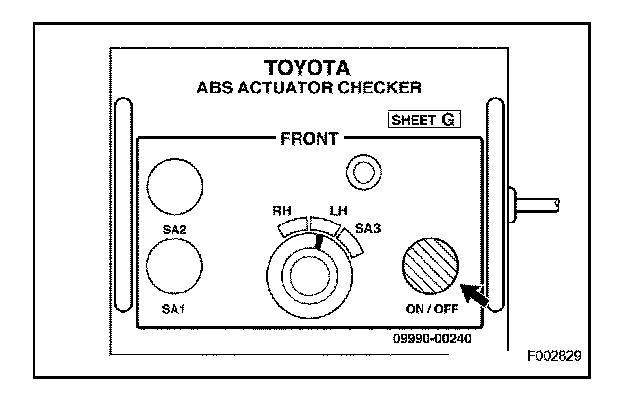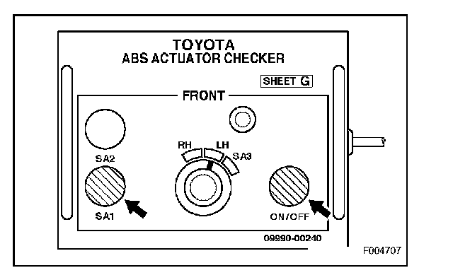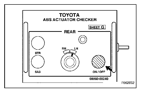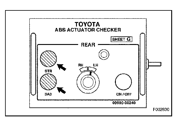 (m) Place "SHEET G REAR" on the actuator checker. SST 09990-00240