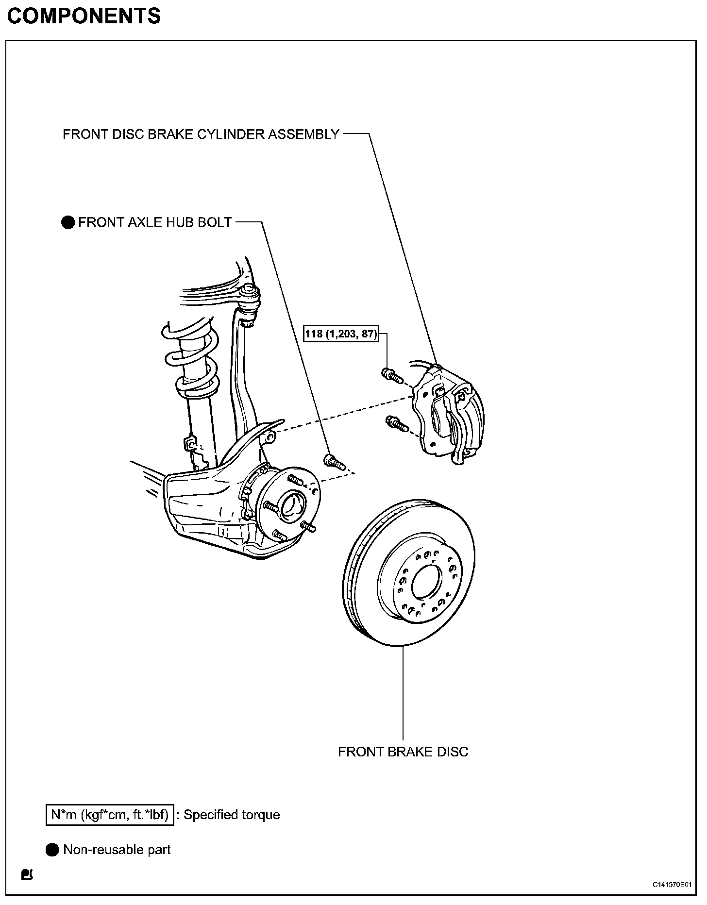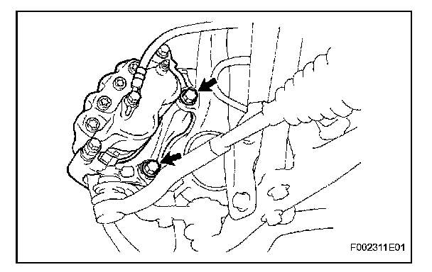 2. DISCONNECT FRONT DISC BRAKE CYLINDER ASSEMBLY