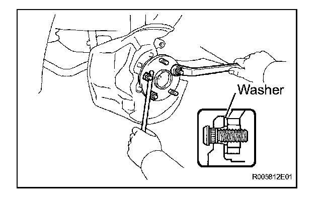(a) Temporarily install a plate washer and nut to a new hub bolt as shown in the illustration.