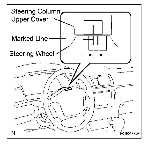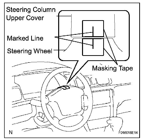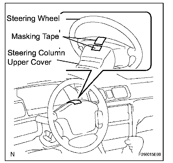 (1) Apply masking tape to the top center of the steering wheel and the upper steering column cover.