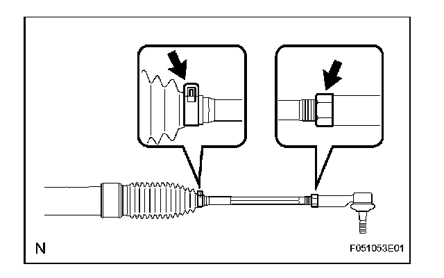 (1) Draw a line on the tie rod and rack end where it can easily be seen.