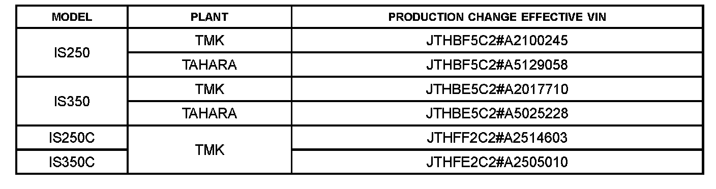 This TSIB applies to all 2006 model year G5300 and 2006 - 2007 model year G5430 vehicles and to vehicles produced BEFORE the Production Change Effective VINs shown.