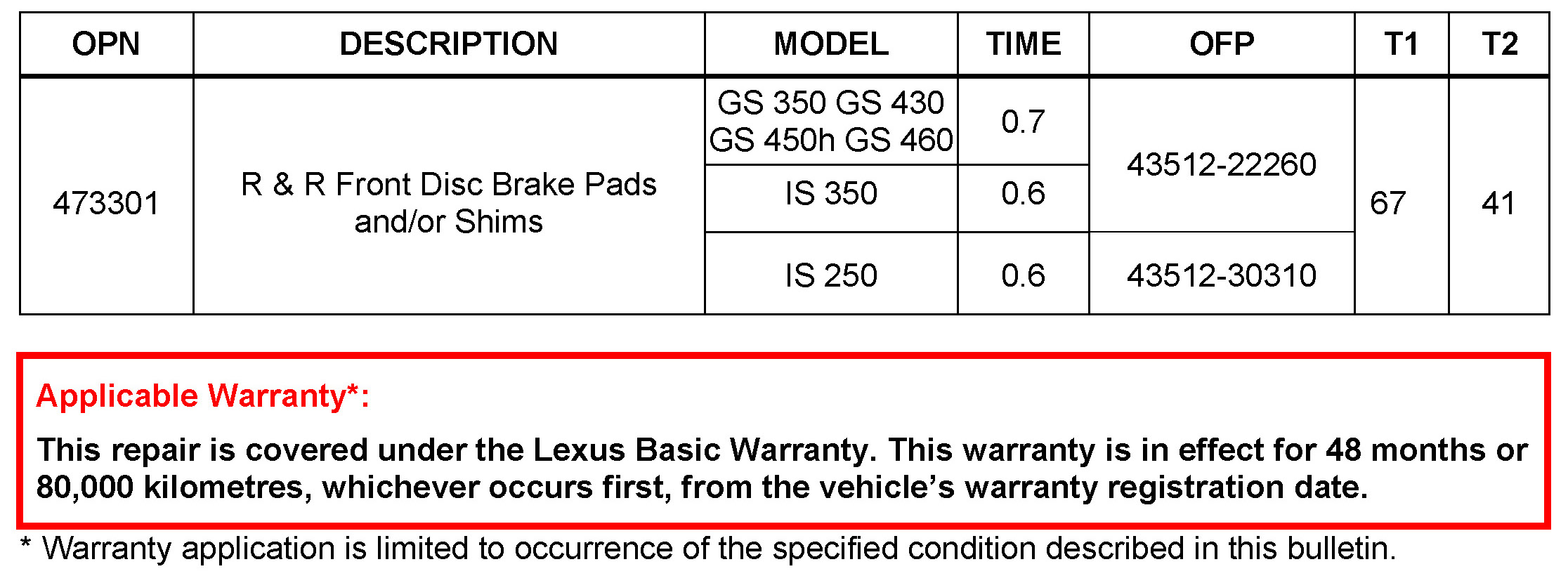 - November 26, 2009: The Applicable Vehicle Information table has been updated.